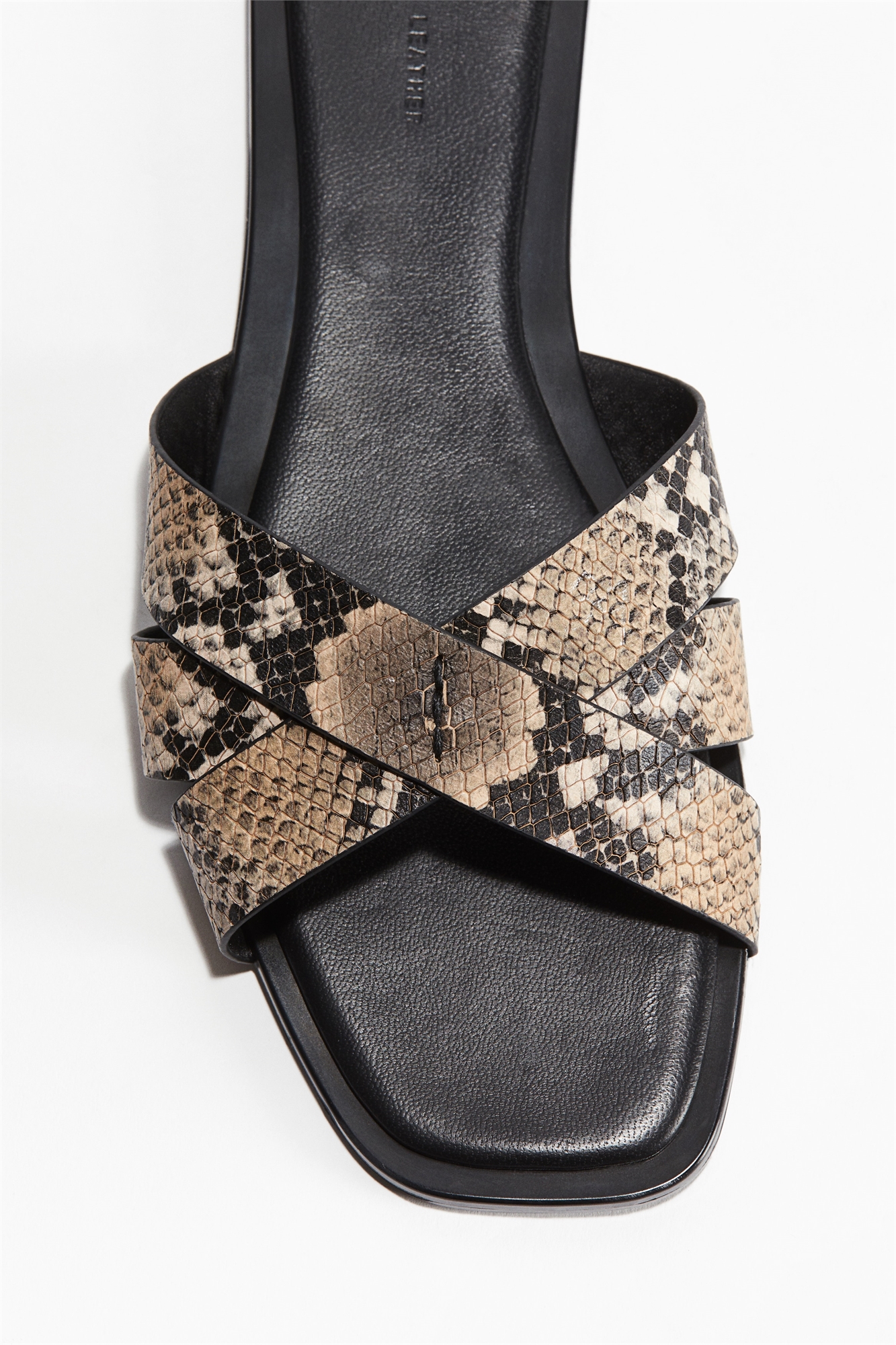 Плоские сандалии из мягкой кожи с квадратным носком и перекрещивающимися ремешками. Кожаная стелька.