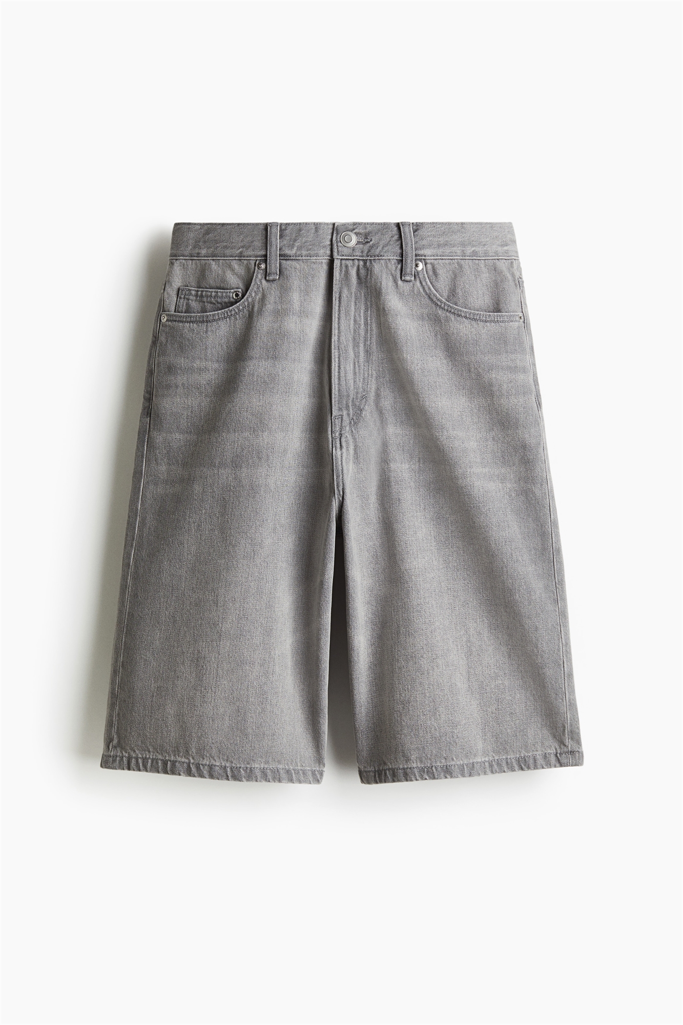 Шорты с 5 карманами из плотного хлопкового денима. Закругленная нога и мешковатый крой от сиденья до подола с большим запасом по всей длине ноги. Заниженная промежность, обычная талия и ширинка на молнии.