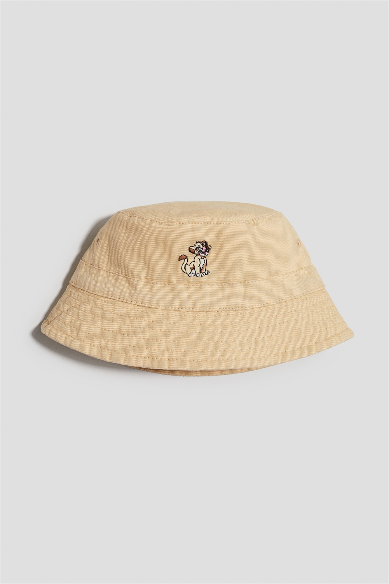 Ведерная шляпа из хлопкового холста с вышитой деталью спереди.