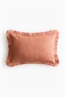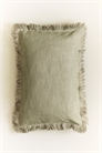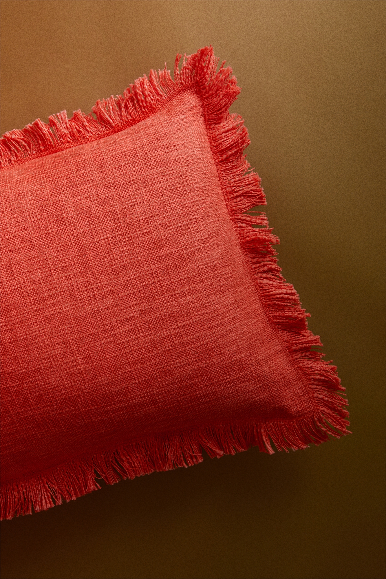 Чехол для подушки из хлопка с плетением slub, с бахромой по краям и потайной застежкой-молнией сзади.