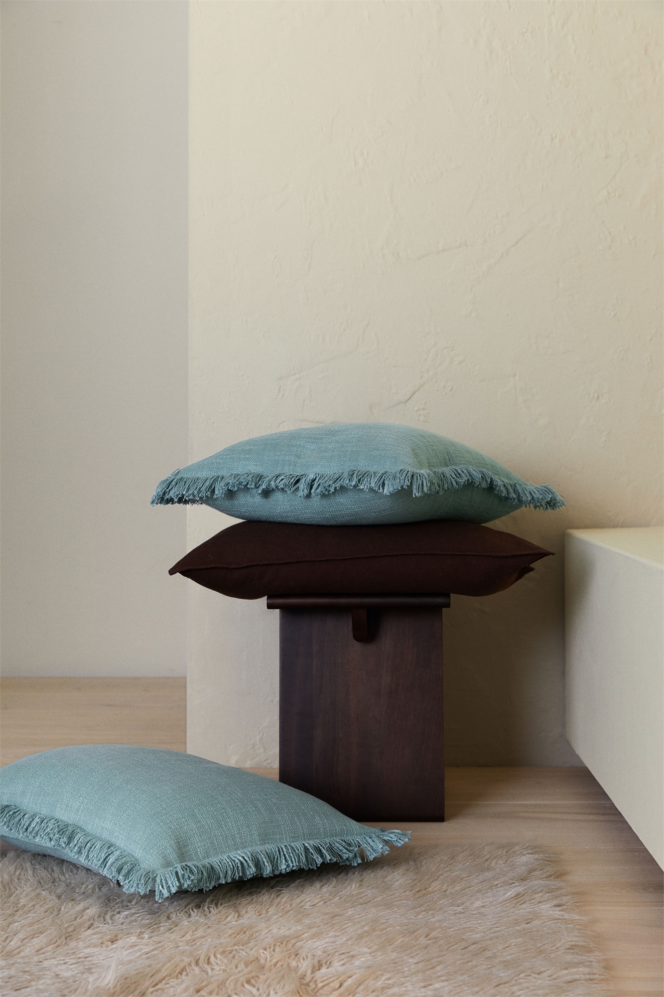 Чехол для подушки из хлопка с плетением slub, с бахромой по краям и потайной застежкой-молнией сзади.