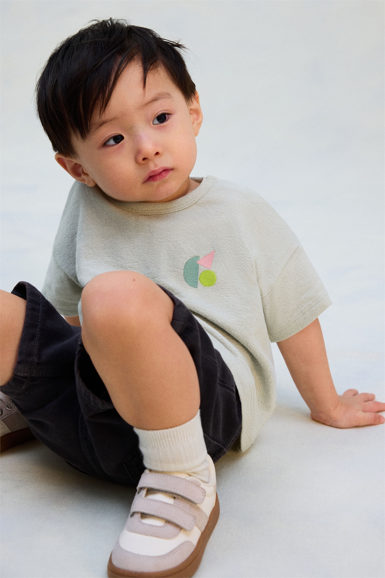 H&M Adorables. Футболка из мягкой, легкой махры, изготовленной из высококачественного хлопка. Круглый вырез с застежками с одной стороны, спущенные плечи и короткие рукава. Коллекция H&M Adorables - это подборка удобных и качественных вещей, не теряющих актуальности.