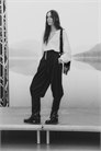 Свободная блузка из мягкого хлопкового муслина с небольшим стеганым воротником-стойкой и V-образной проймой с узкими завязками спереди. Длинные рукава реглан с узкими манжетами и закругленный подол.