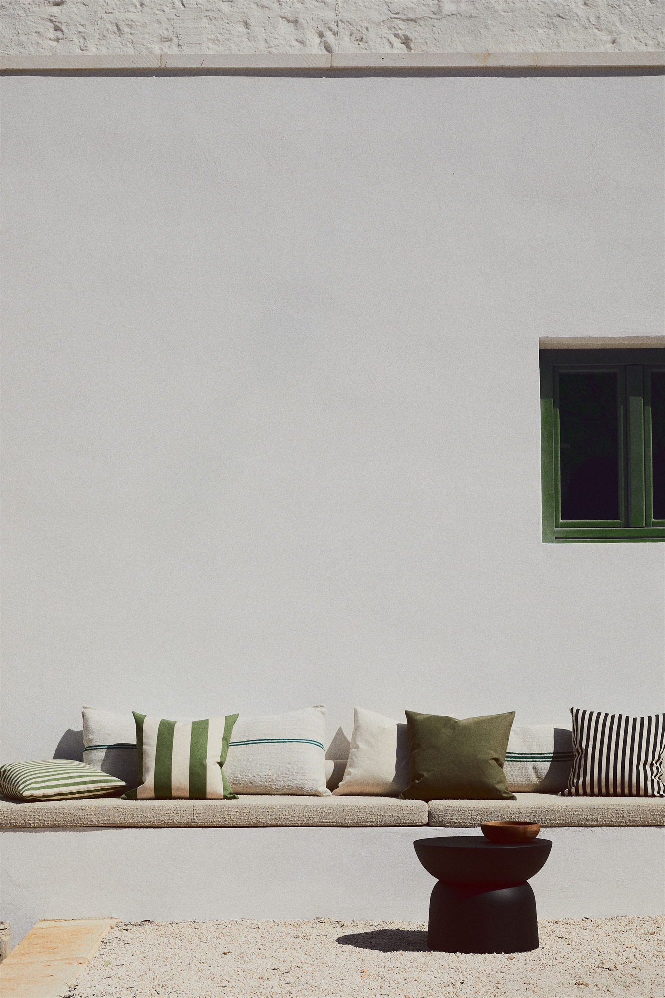 Чехол для подушки из водоотталкивающего хлопкового полотна подходит для использования на открытом воздухе. Застежка-молния с одной стороны.