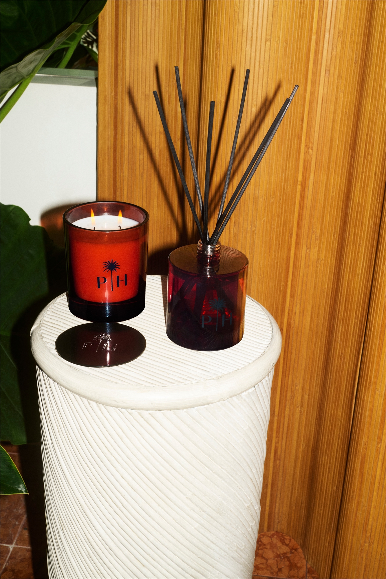 PALM HEIGHTS x H&M HOME. Бархатистая сладость созревшей на солнце сливы и тропических бобов тонка сочетается с богатыми объятиями кедрового дерева и табачных листьев в этой ароматической свече, воплощающей непринужденную роскошь отдыха на Карибском острове. Стеклянный держатель свечи имеет насыщенный темный оттенок, а на крышке выгравирован логотип Palm Heights. Поставляется в красивой подарочной коробке. Время горения 35 часов. Привнесите роскошь курорта Palm Heights в свой дом с помощью этой коллекции в карибском стиле с игривым дизайном и ретро-шармом, разработанной в сотрудничестве с креативным директором Габриэллой Халил. Диаметр подсвечника 10,1 см. Высота 12,2 см.