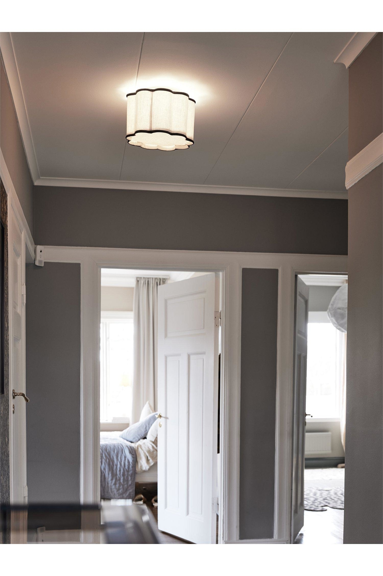Потолочный светильник Judy. Потолочный светильник в форме волны из органического хлопка с черным кантом, который подчеркивает форму и делает ее привлекательной. Ткань не отбеливается и полностью обшита той же тканью. Волнообразный рассеиватель из той же ткани. Этот потолочный светильник излучает мягкий и приятный свет. Диаметр 35 см, высота 21 см. Для подвеса на крючок. Для потолочного светильника требуются 3 шарообразные лампочки с цоколем E27, макс. 3 × 60 Вт. Рекомендуются светодиодные источники света. IP20. Источник света и потолочная вилка в комплект не входят.