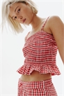 Облегающий топ из хлопкового полотна с прямым кроем в верхней части и оборкой по подолу. Двойные бретели-спагетти продеваются через маленькие петельки и завязываются сзади.