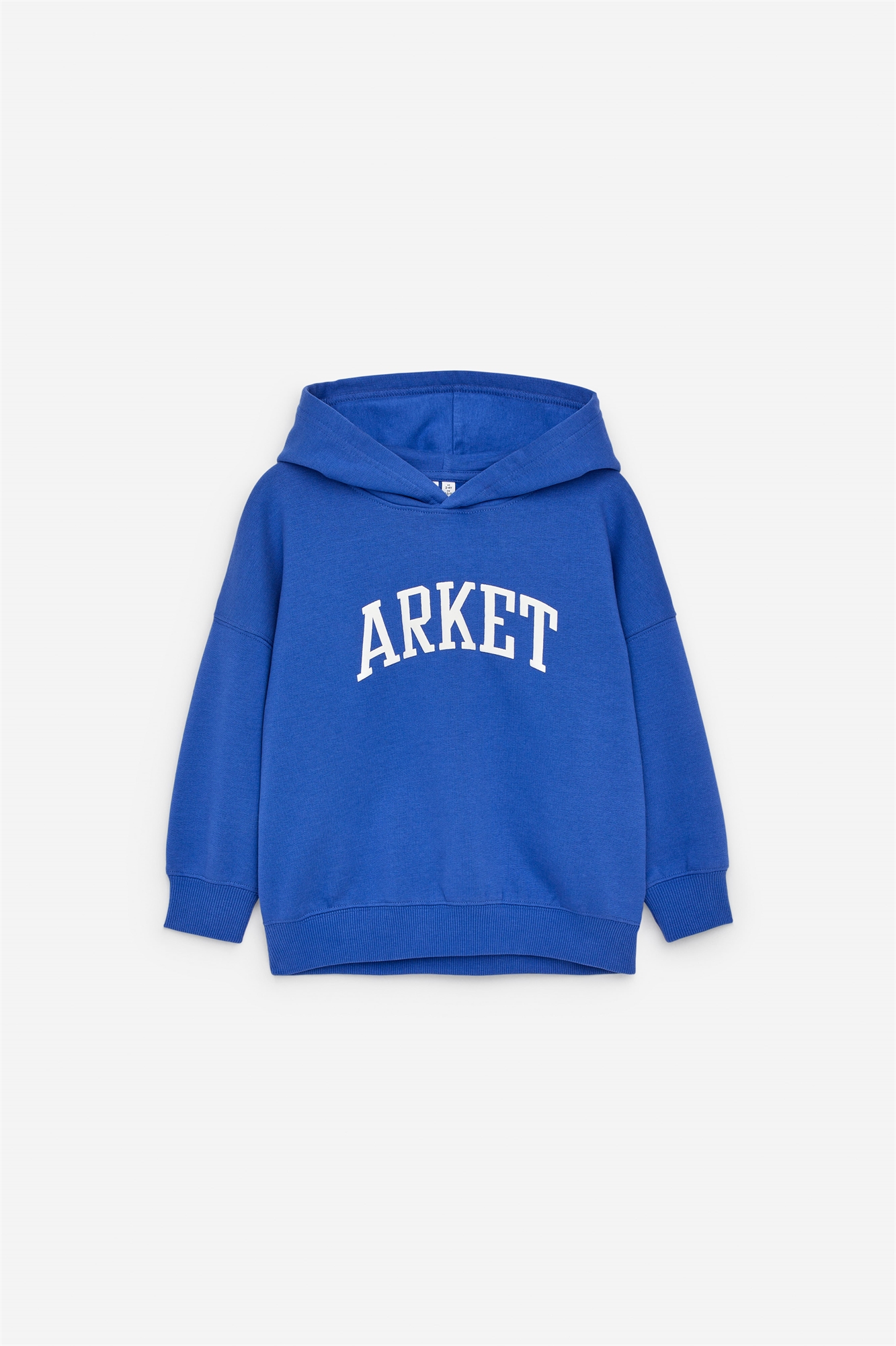Плотная толстовка с капюшоном сшита из хлопка. Модель с опущенными плечами, ребристой отделкой и принтом на груди.