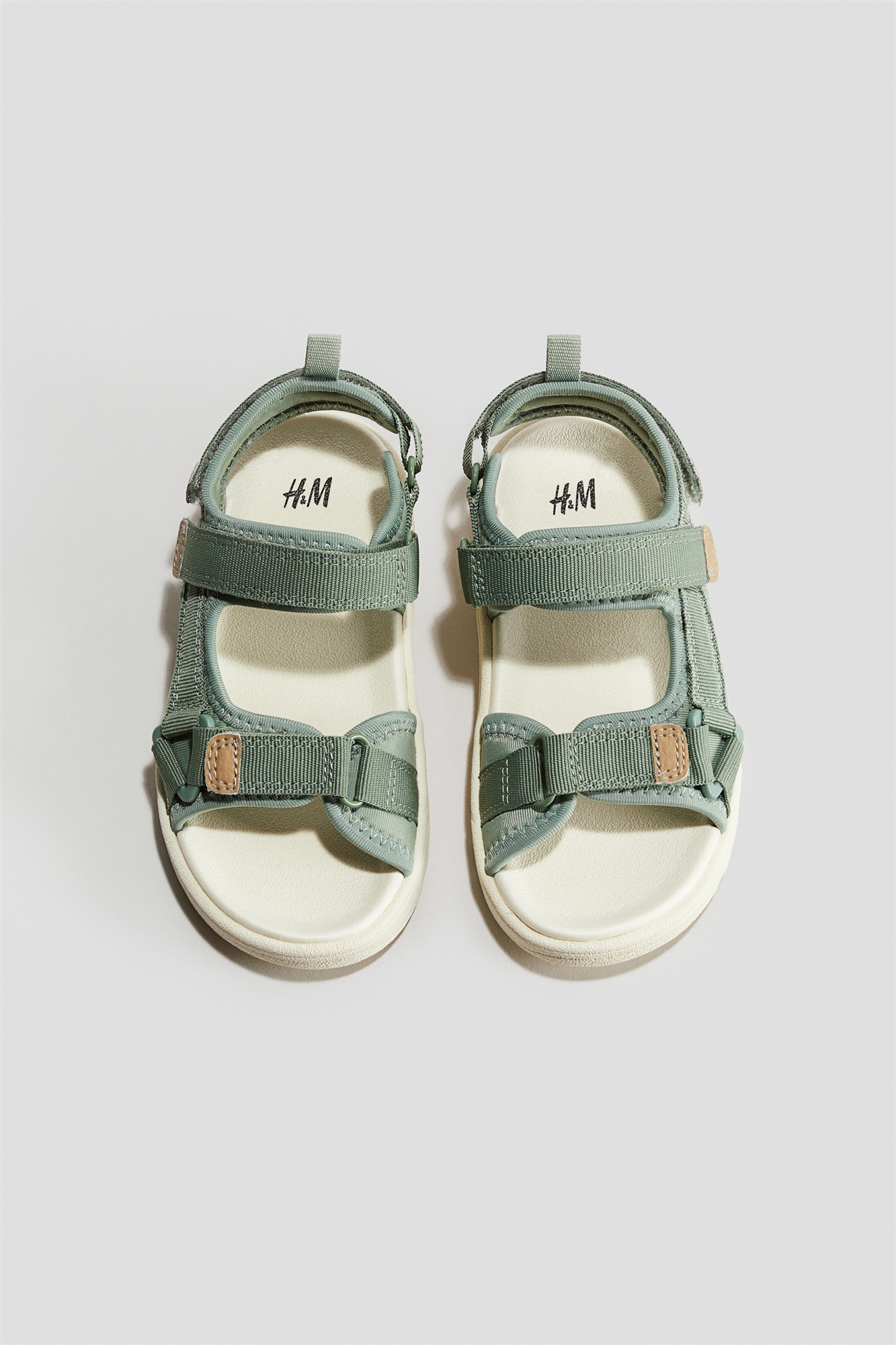 Сандалии из мягкой ткани скуба с регулируемыми ремешками из гросгрейн с застежкой на крючки и петли на стопе и вокруг лодыжки. Формованные стельки и рифленая подошва.