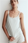 Пижама с топом на бретелях и шортами из ребристого трикотажа. Топ с кружевной отделкой по вырезу горловины и бретелям и подолом, обработанным оверлоком. Шорты с эластичной талией и оверлоком по подолу.