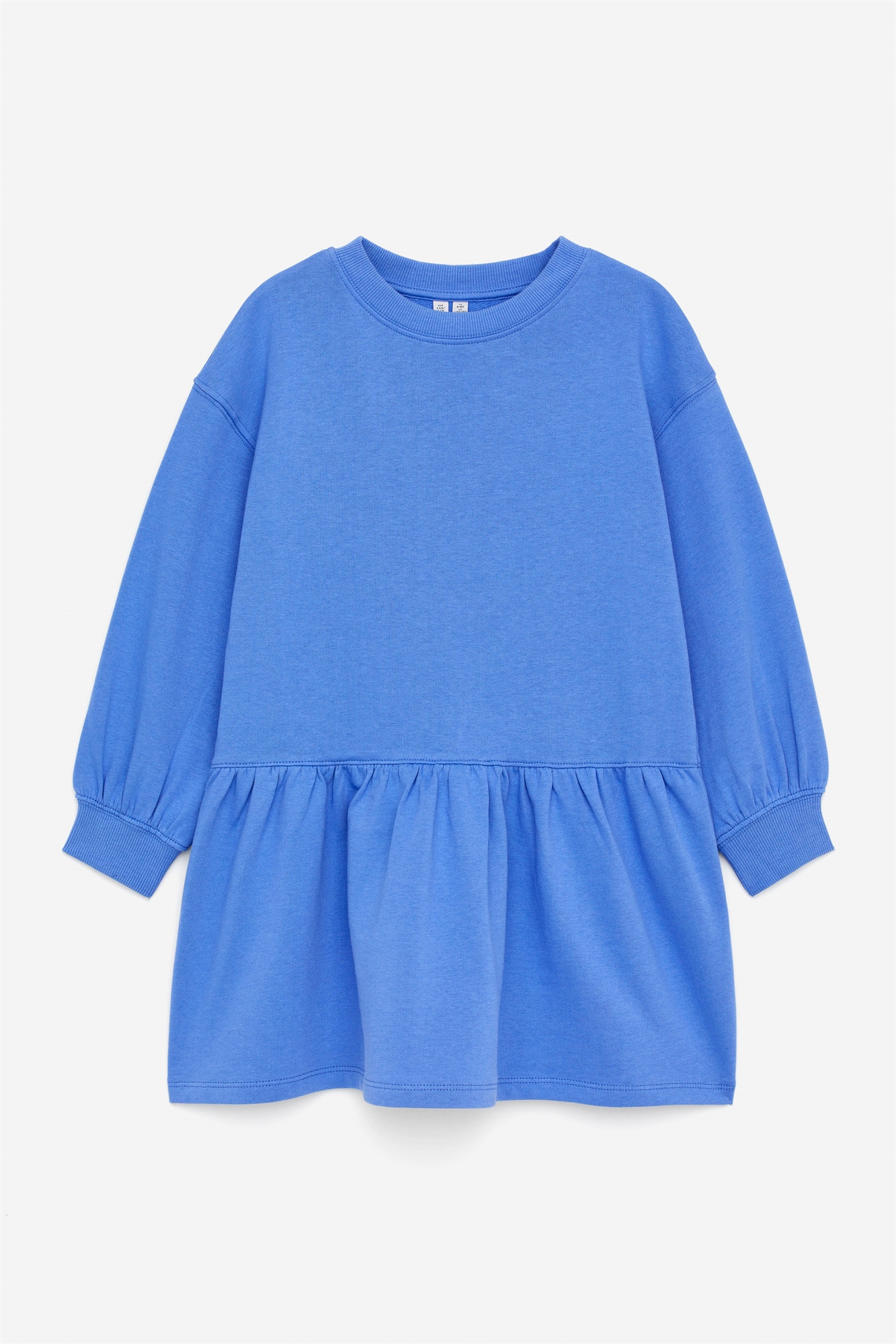 Платье-толстовка оверсайз из мягкой хлопковой махровой ткани. Модель со спущенными плечами и сборками ниже талии.