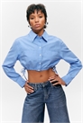 Обрезанная хлопковая рубашка-карго свободного кроя. Классический рубашечный воротник, спущенные плечи, нагрудные карманы, застежка на пуговицах, манжеты на пуговицах и утягивающийся подол с боковыми завязками. Свободный крой. Обрезанная длина. Рубашечный воротник. С длинными рукавами. Спущенные плечи. Застежка на пуговицы. Подол с завязками.