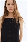 Короткий приталенный жилет из крепового джерси с прямым вырезом и бретелями-спагетти. Пуговицы спереди и формирующие вытачки спереди и сзади. На подкладке.