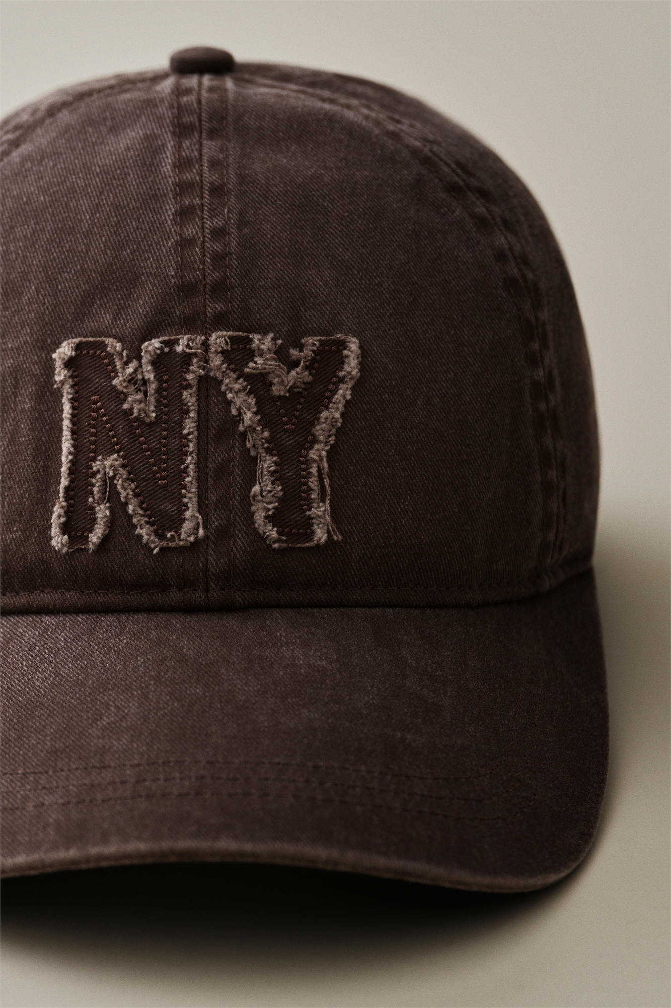 Кепка из хлопковой саржи с вышитой аппликацией спереди и обтрепанным краем вокруг козырька. Хлопковый потник и регулируемый язычок с металлической пряжкой сзади. Частично на подкладке.