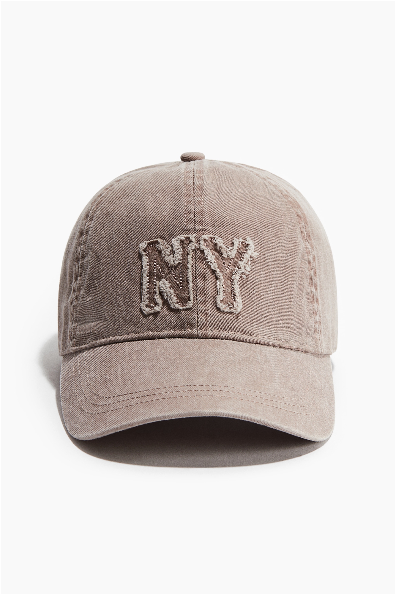 Кепка из хлопковой саржи с вышитой аппликацией спереди и обтрепанным краем вокруг козырька. Хлопковый потник и регулируемый язычок с металлической пряжкой сзади. Частично на подкладке.