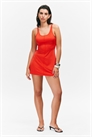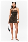 Мини-платье на бретелях, с приталенным лифом и расклешенной юбкой. Изготовленное из мягкого стрейч-джерси, оно имеет круглый вырез и центральные швы "флэтлок" для тонкой детализации.