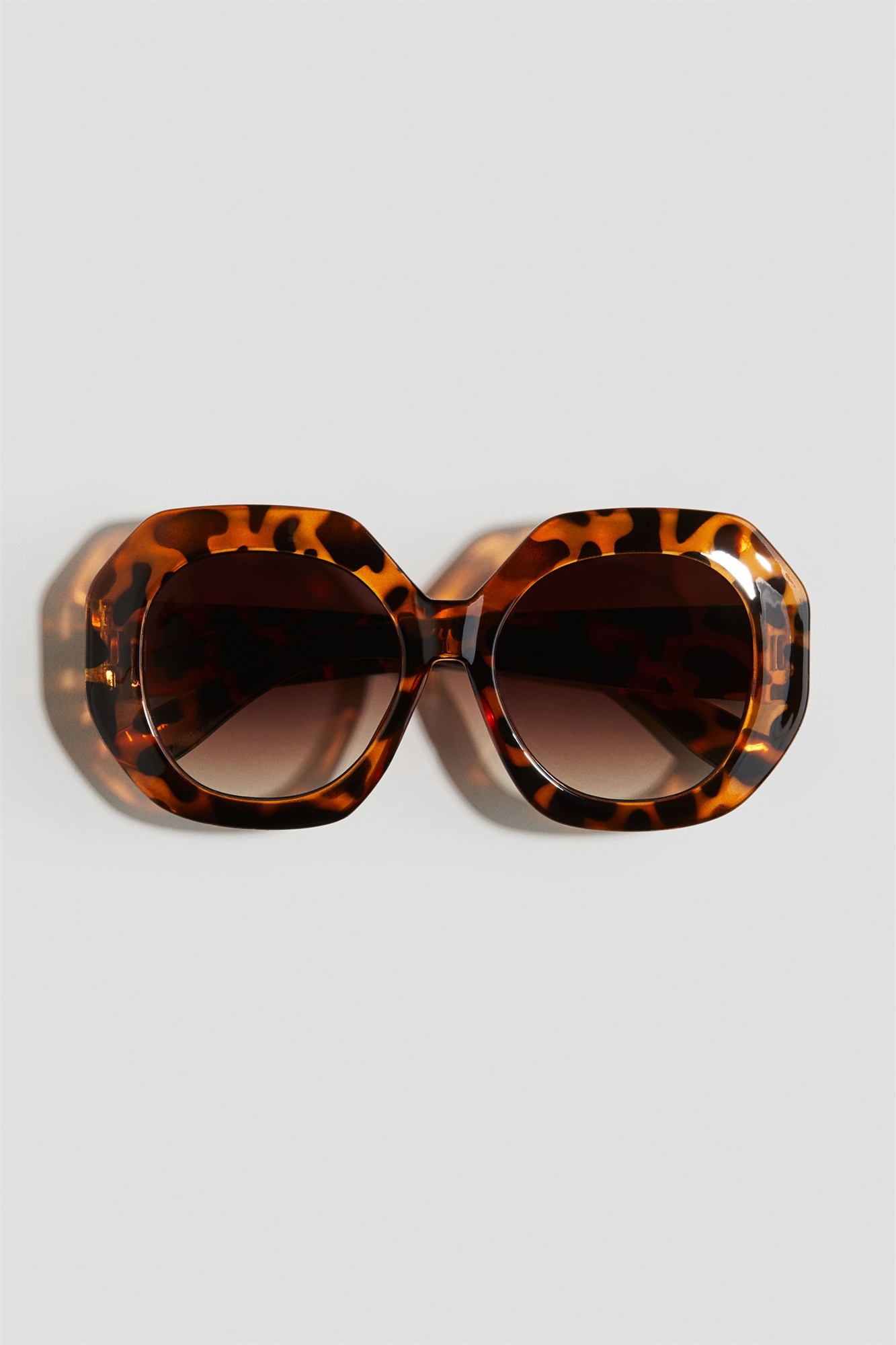 Солнцезащитные очки с пластиковыми оправами и боковыми дужками. Тонированные линзы с защитой от ультрафиолета.