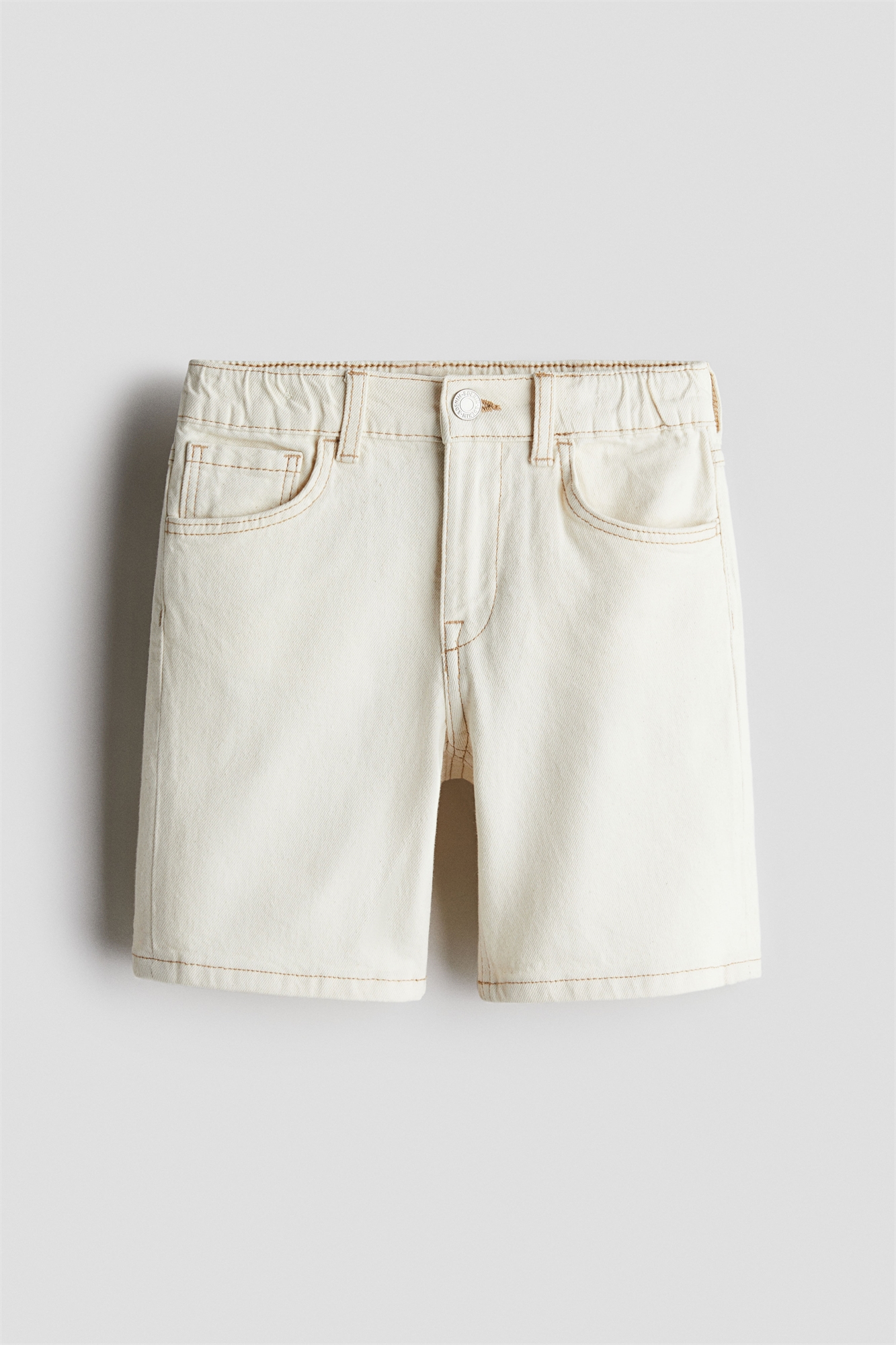 Шорты длиной до колена с 5 карманами из эластичного денима с регулируемой эластичной талией и ширинкой на молнии с кнопкой.