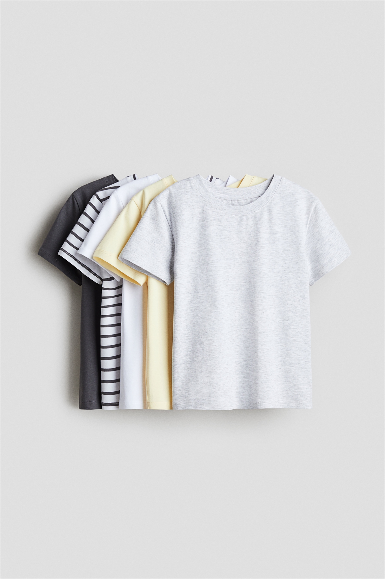 Топы с короткими рукавами из хлопкового джерси, круглым вырезом с ребристой отделкой и прямым покроем.