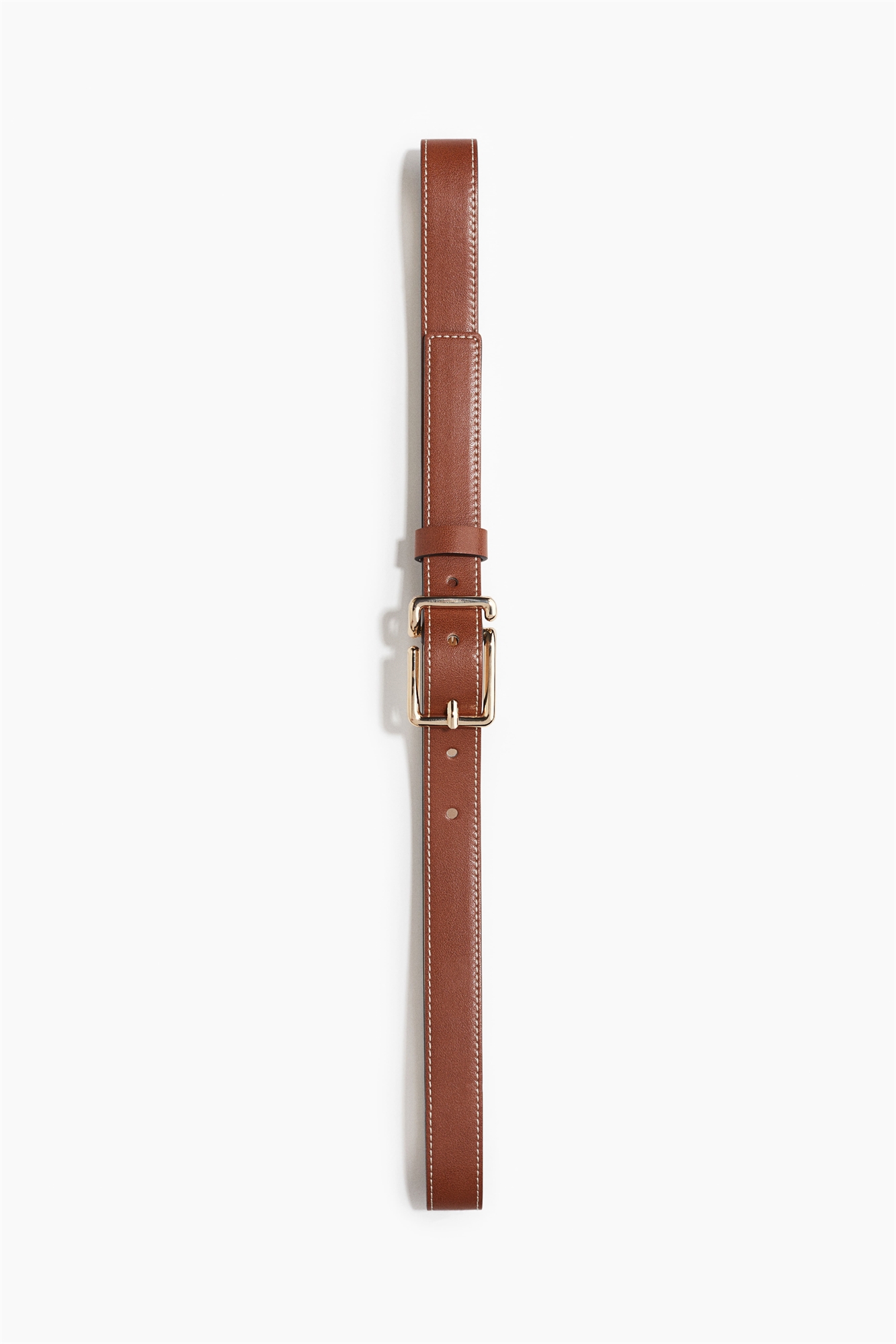 Ремень из мелованной ткани с акцентной цветной строчкой и квадратной металлической пряжкой.