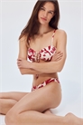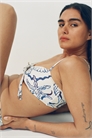 Бикини на подкладке, без проводов, с регулируемыми бретелями и чашечками со съемными вкладышами, которые формируют бюст и обеспечивают хорошую поддержку. Бонификация по бокам и отверстие по центру бюста с узким шнурком с декоративным металлическим брелоком на концах. Без застежек.