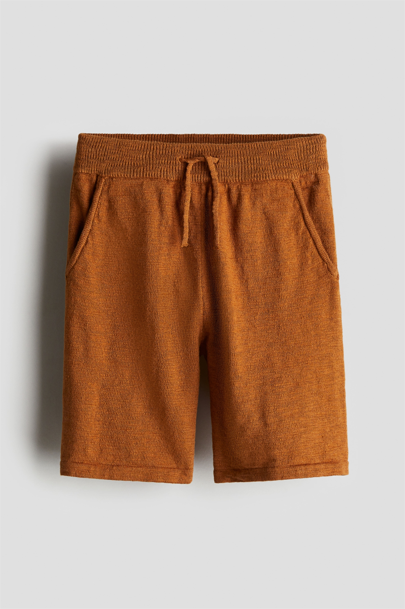 Шорты из мягкого хлопка тонкой вязки с эластичным поясом и диагональными боковыми карманами.