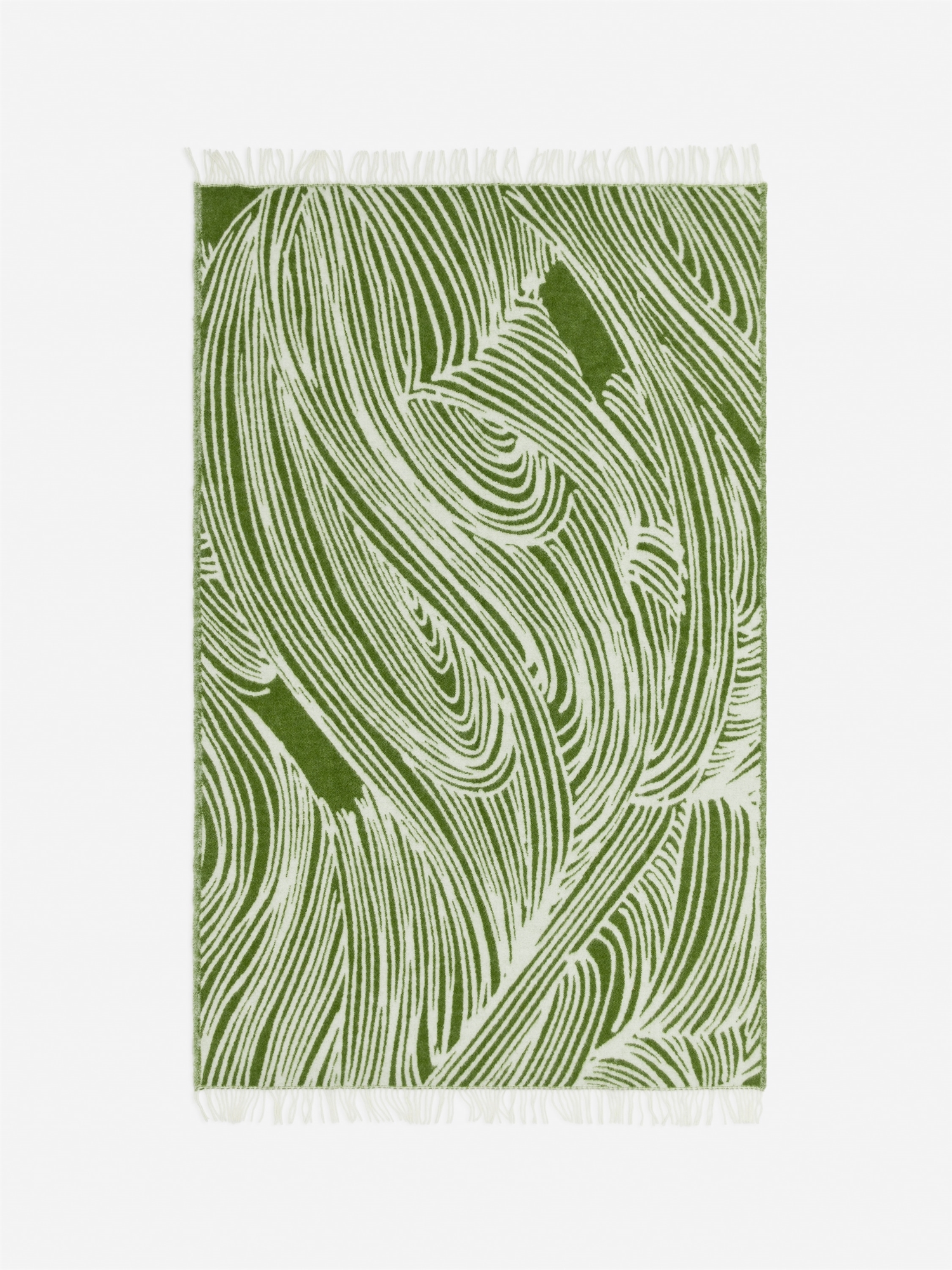 Шерстяное одеяло от Klippan с жаккардовым узором от The Design Libraby, Нью-Йорк. Бахрома по коротким краям. Размеры 200 см x 130 см.