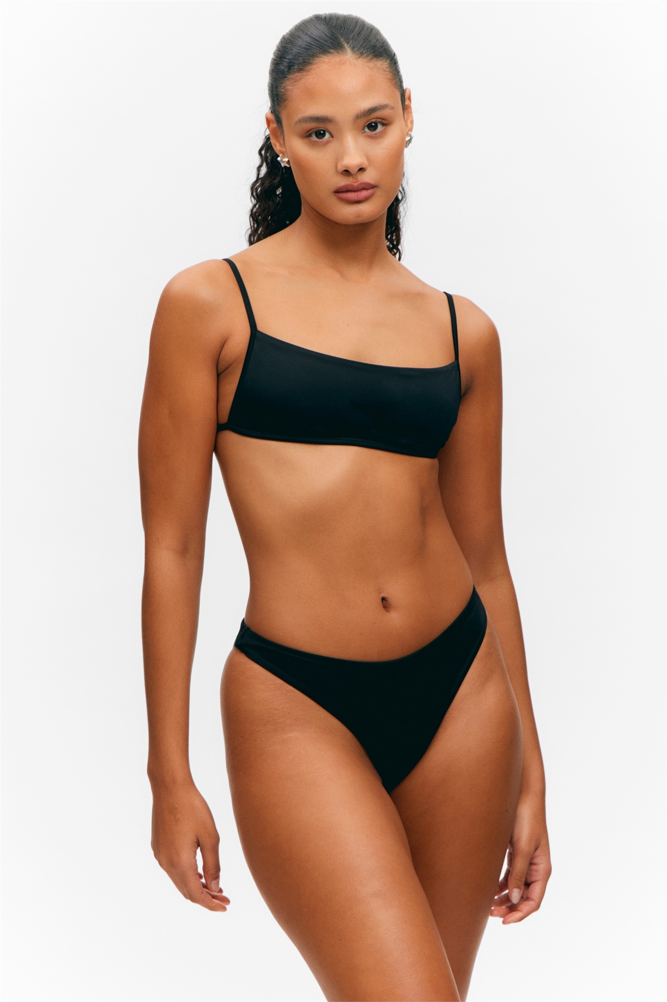 Минимальный бикини с квадратным вырезом и тонкими бретелями. Создан из эластичной ткани, полностью на подкладке и с регулируемым поясом для удобной посадки. Квадратный вырез. Регулируемые бретели. Полностью на подкладке. Эластичная ткань.