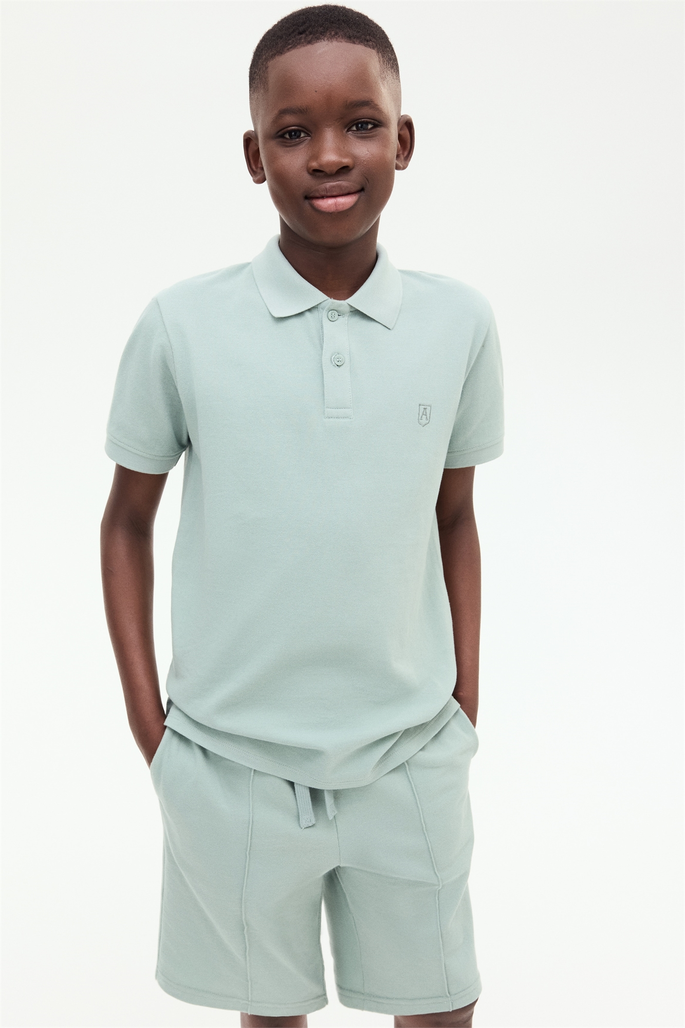 Комплект из рубашки-поло и шорт из мягкого хлопка пике. Рубашка-поло с ребристым воротником, застежкой на пуговицах, короткими рукавами с ребристыми манжетами и подолом в стиле поло. Шорты длиной до колена с эластичным утягивающим поясом, неброскими боковыми карманами и булавками по передней части ног.
