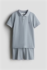 Комплект из рубашки-поло и шорт из мягкого хлопка пике. Рубашка-поло с ребристым воротником, застежкой на пуговицах, короткими рукавами с ребристыми манжетами и подолом в стиле поло. Шорты длиной до колена с эластичным утягивающим поясом, неброскими боковыми карманами и булавками по передней части ног.