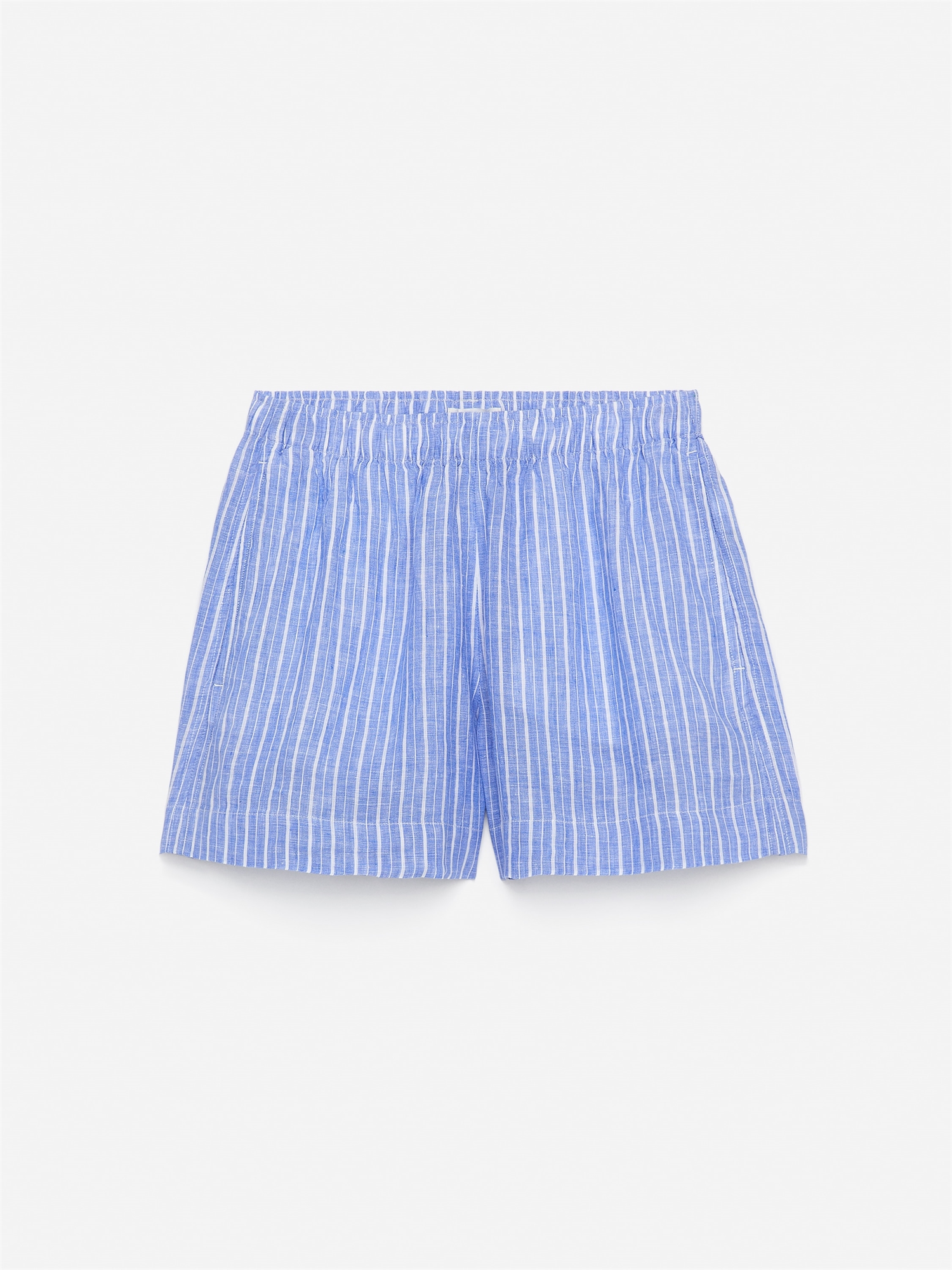 Льняные шорты с эластичной резинкой на талии и карманами в боковых швах.