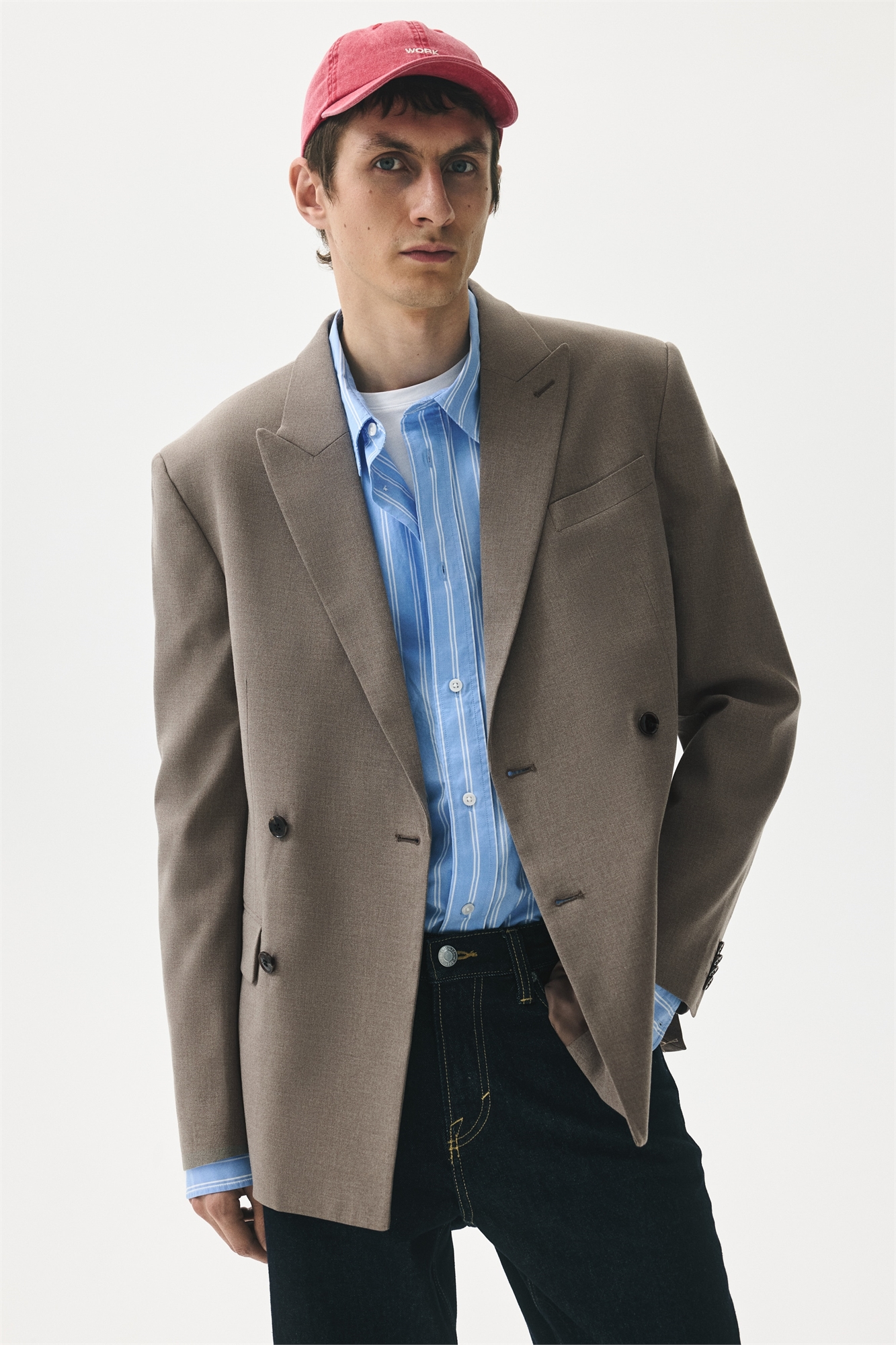 Двубортный пиджак из мягкой ткани с пикообразными лацканами с декоративной петлей для пуговицы и пуговицами спереди. Нагрудный карман, прорезные передние карманы с клапаном и два внутренних кармана. Декоративные пуговицы на манжетах и один задний клапан. Свободный крой для непринужденного, но не слишком большого силуэта. На подкладке.