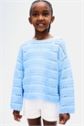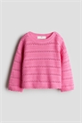 Джемпер из мягкого хлопка с пуантельевой вязкой, с круглым ребристым вырезом и декоративными пуговицами с одной стороны. Спущенные плечи и длинные рукава. Манжеты и подол отделаны ребрами с зубчатым краем.