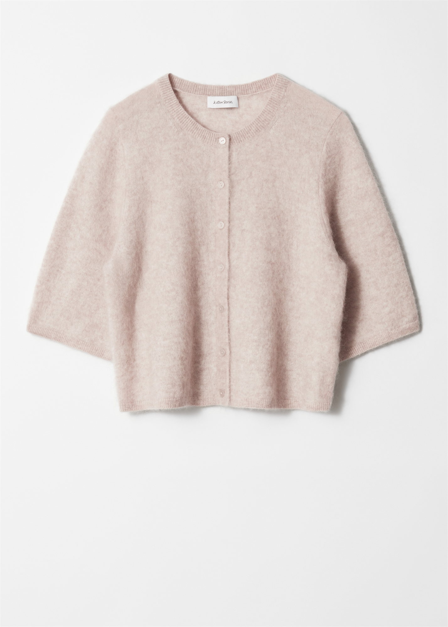 Кардиган с короткими рукавами, вязаный из смеси мохера и мериносовой шерсти. Горловина, манжеты и подол в рубчик, а также рукава в форме кокона. Застегивается на пуговицы спереди по центру. • Свободный крой • 32% мохера RMS TE-00047206 • 32% шерсти RWS TE-00047206 Длина кардигана: 53,5 см / 21 дюйм (размер S)