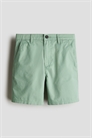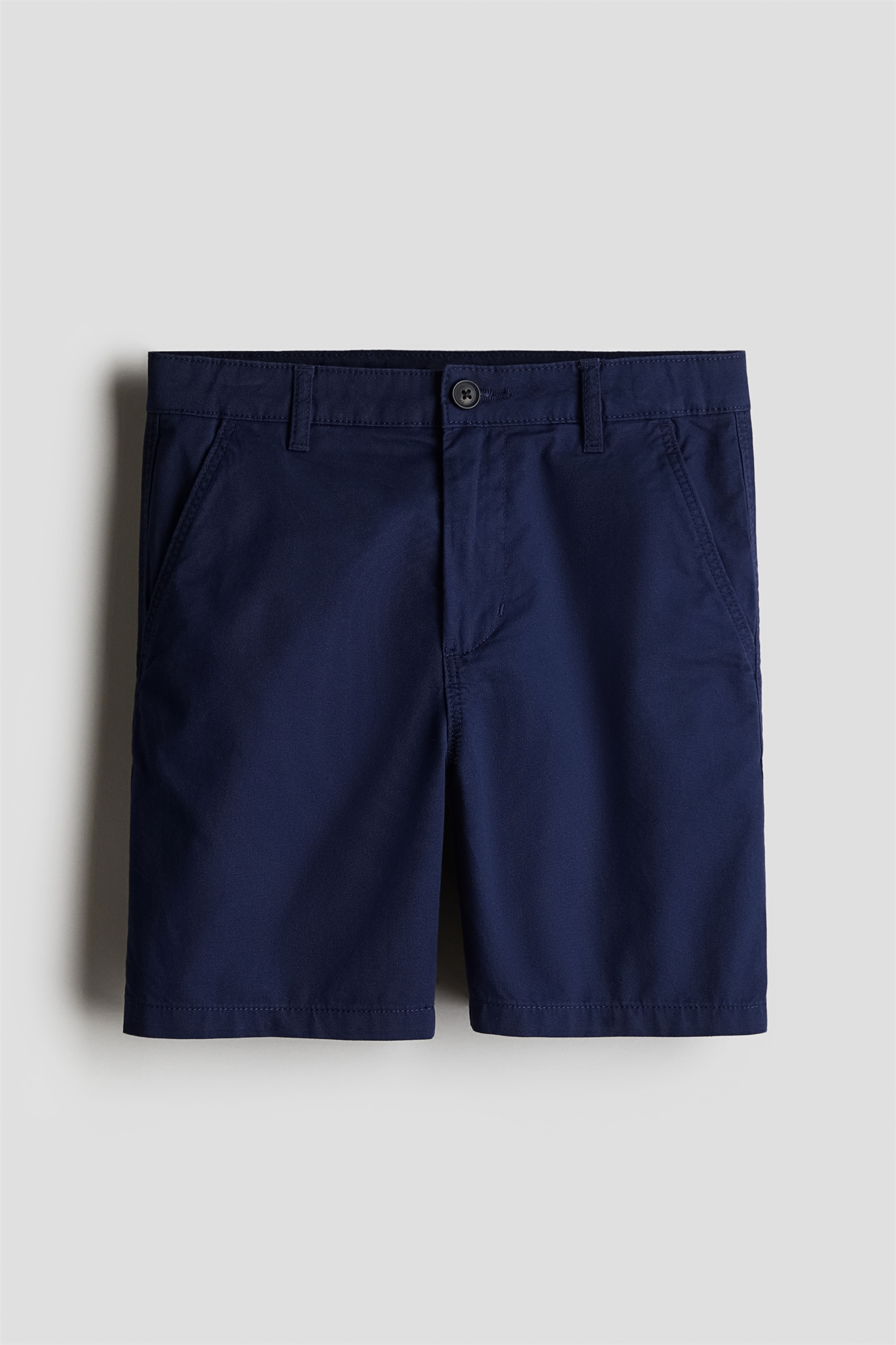 Шорты из мягкой хлопковой саржи с регулируемой эластичной резинкой на талии, ширинкой на молнии и пуговице, диагональными боковыми карманами и накладным задним карманом с застежкой на пуговицу.