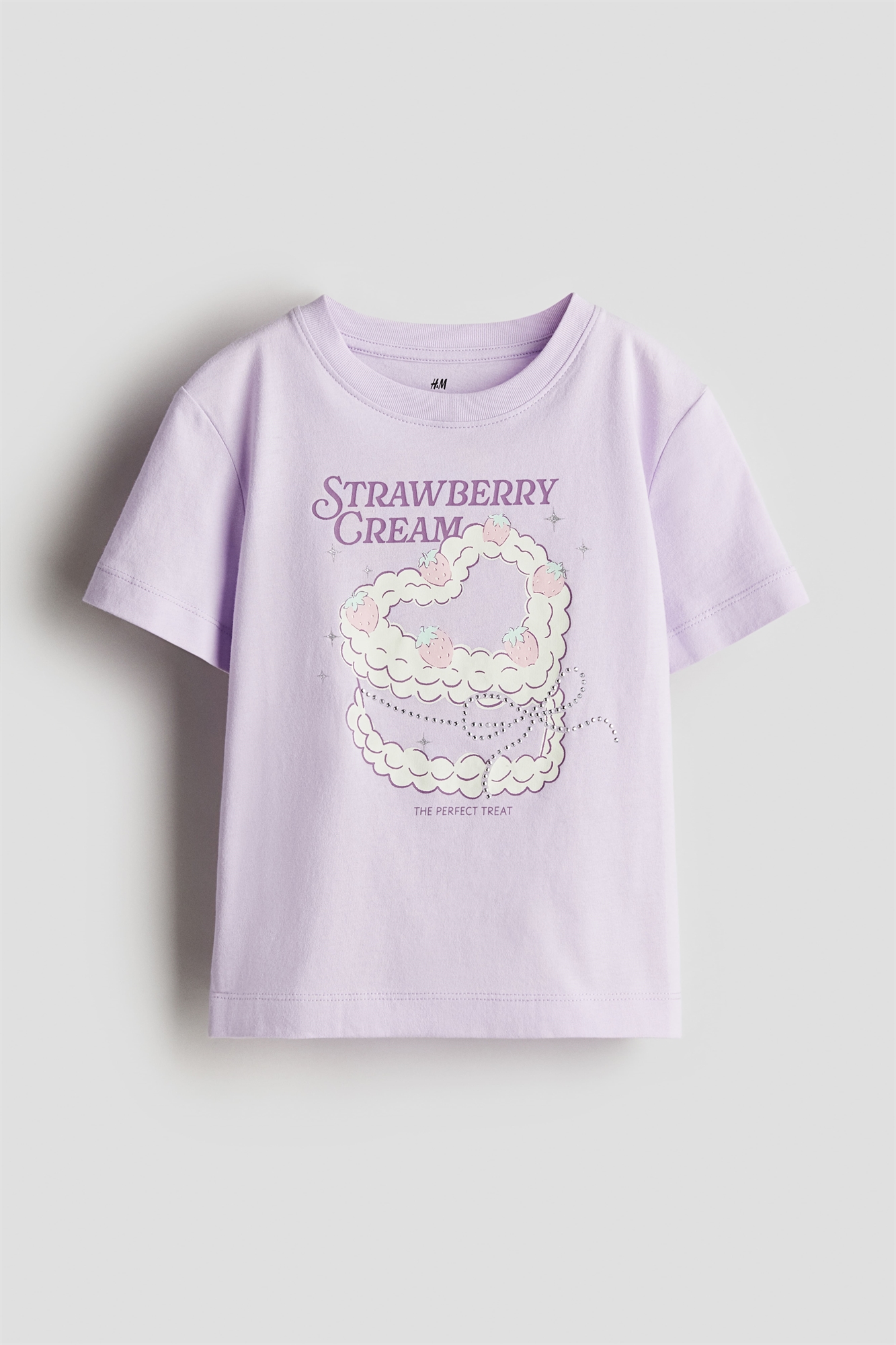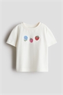 Футболка из хлопкового джерси с мотивом спереди. Круглый вырез с ребристой отделкой, спущенные плечи и короткие рукава.