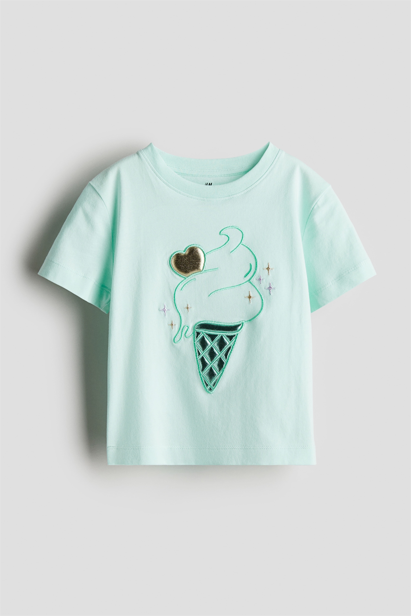 Футболка из хлопкового джерси с мотивом спереди. Круглый вырез с ребристой отделкой, спущенные плечи и короткие рукава.