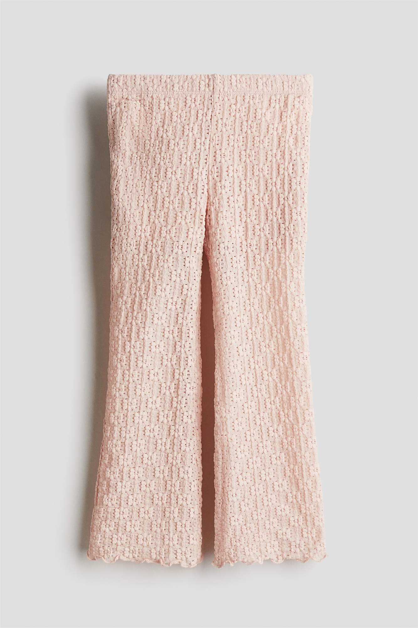 Брюки из мягкого, текстурированного джерси с перфорацией. Эластичная резинка на талии и слегка расклешенные ноги с оверлоком по краям. На подкладке.