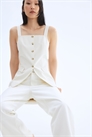 Длинный приталенный жилет из тканого материала с широкими бретелями и прямым вырезом. Пуговицы спереди и накладные передние карманы. На подкладке.