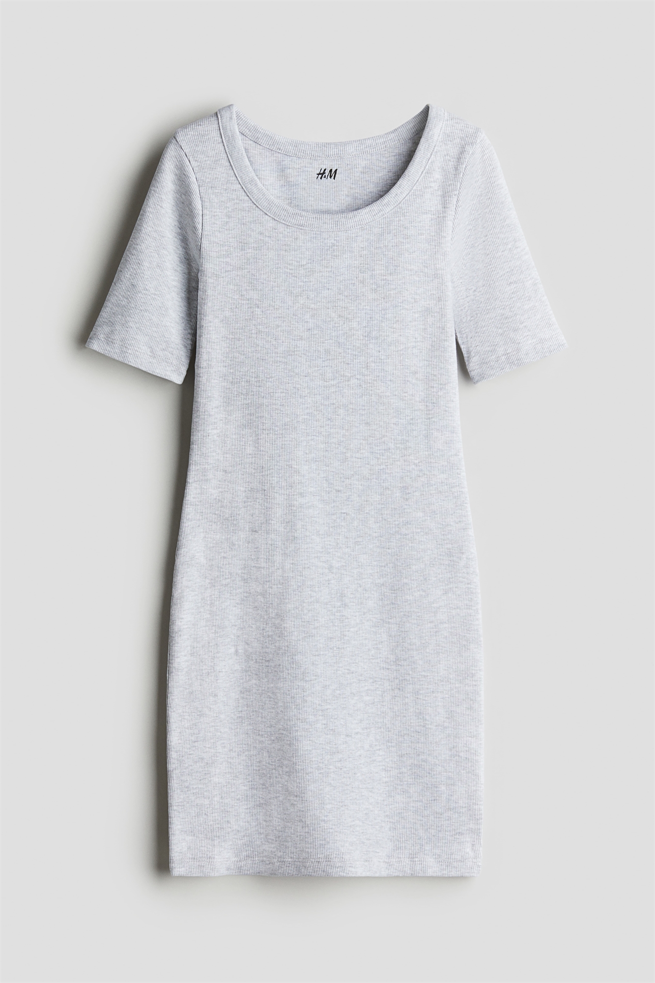 Платье из мягкого ребристого хлопкового джерси. Круглый вырез и короткие пышные рукава.