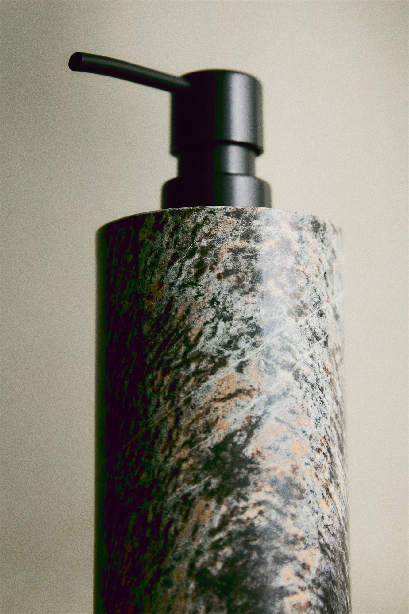 Дозатор для мыла из мрамора, который придаст вашей ванной комнате естественный деревенский вид. Поскольку мрамор является натуральным материалом, цвет каждого изделия может отличаться. Диаметр 7 см. Высота 13 см.