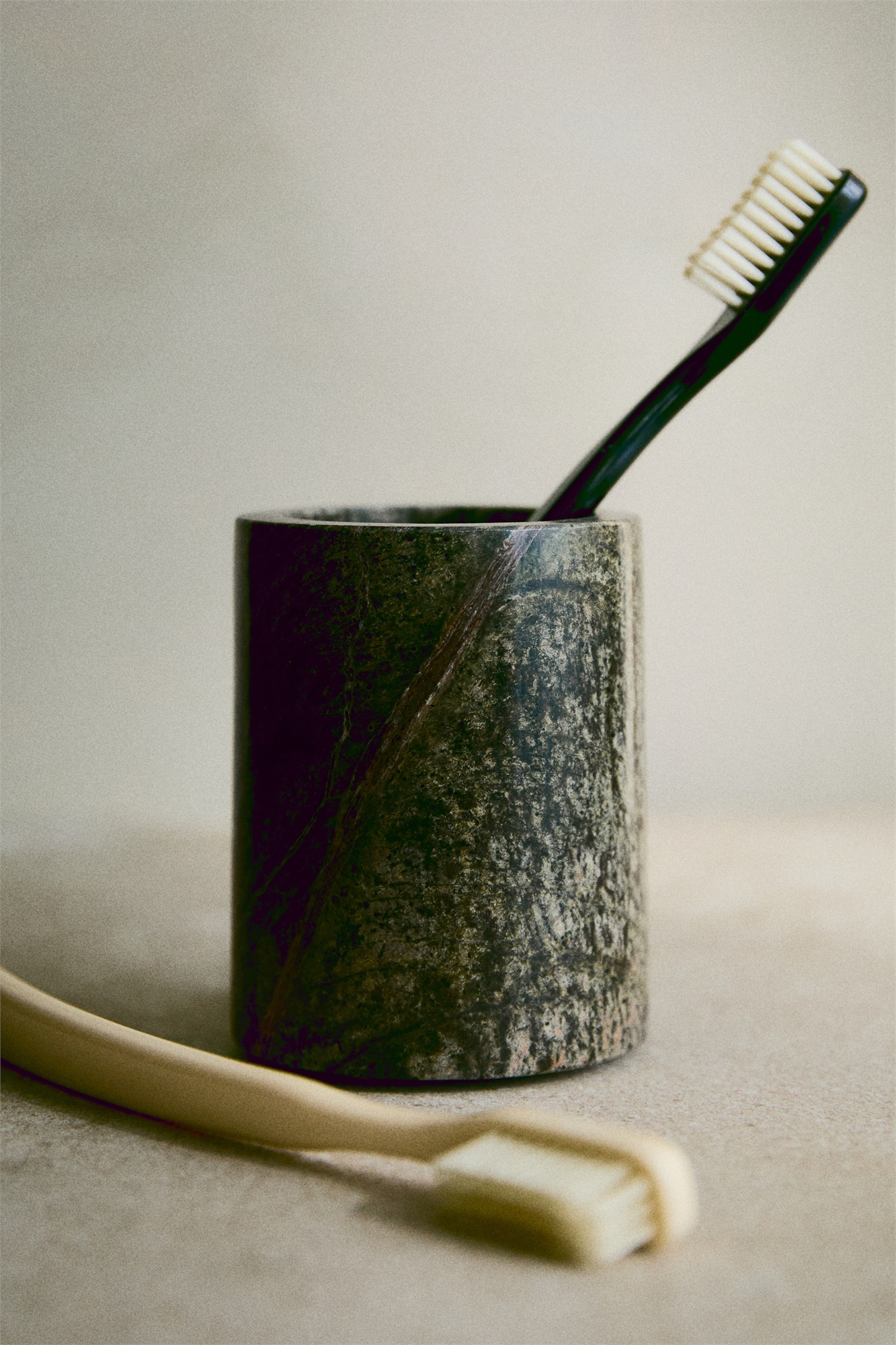 Кружка для зубных щеток из мрамора, которая придаст вашей ванной комнате естественный деревенский вид. Поскольку мрамор является натуральным материалом, цвет каждого изделия может отличаться. Диаметр 7 см. Высота 9 см.