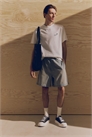 Шорты длиной до колена из жесткого денима из смеси хлопка и лиоцелла с эластичной отделкой, скрытым шнурком на талии, фальшивой ширинкой, боковыми карманами и втачными задними карманами. Мешковатый крой от сиденья до подола с большим запасом по всей длине ноги.