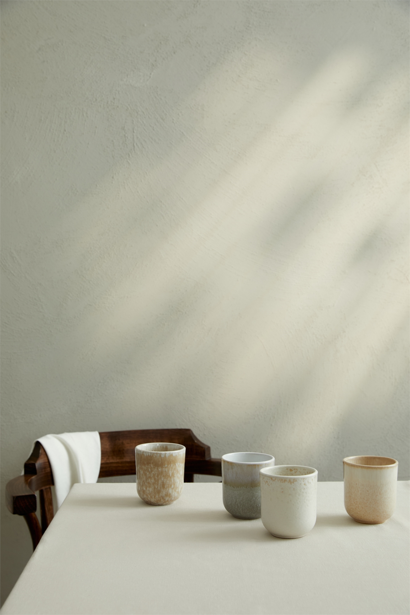 Четыре кружки из керамики и ручной работы. Кружки покрыты реактивной глазурью, которая создает красивую пеструю окраску, придавая каждой из них уникальный вид.