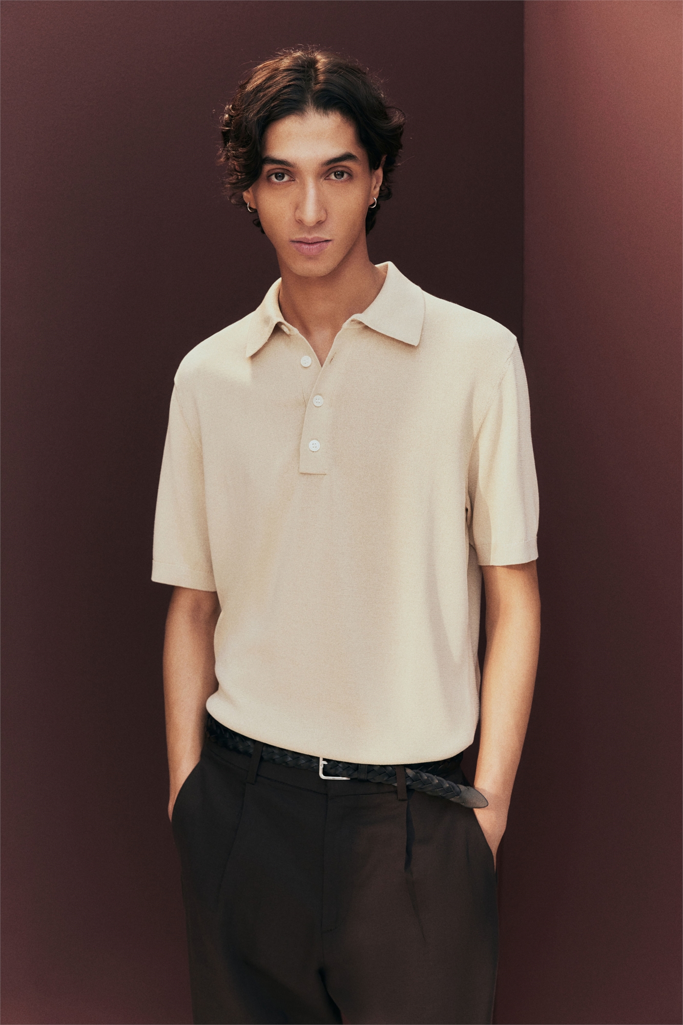 Рубашка-поло с короткими рукавами из тонкого трикотажа из смеси вискозы, с воротником, застежкой на пуговицах и окантовкой на манжетах и подоле. Регулярный крой для комфортной носки и классического силуэта.