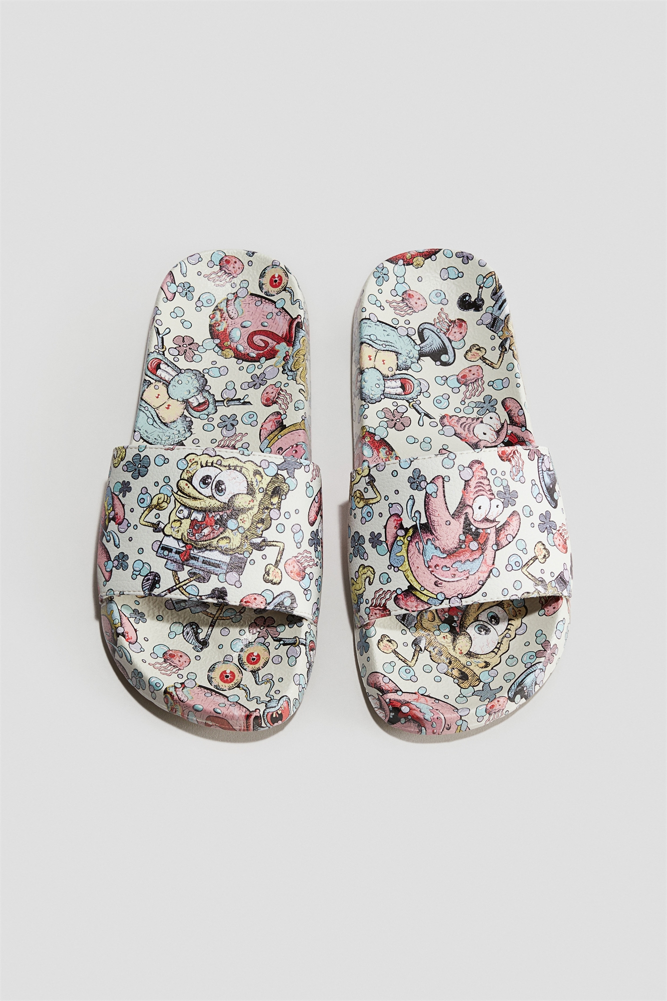 Принтованные туфли для бассейна с широким ремешком и круглыми носками. Формованная стелька и рифленая подошва.