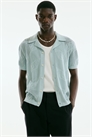 Рубашка с короткими рукавами из жаккардового трикотажа с курортным воротником, пуговицами спереди и прямым подолом. Регулярный крой для комфортной носки и классического силуэта.
