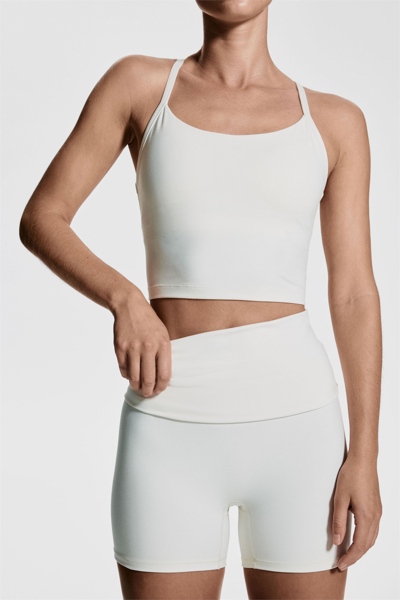Спортивные велошорты из функциональной ткани SoftMove™, которая обеспечивает максимальную мягкость и комфорт, а также поддержку контуров, и DryMove™, которая помогает отводить влагу от кожи. Высокая талия с откидной панелью на талии.