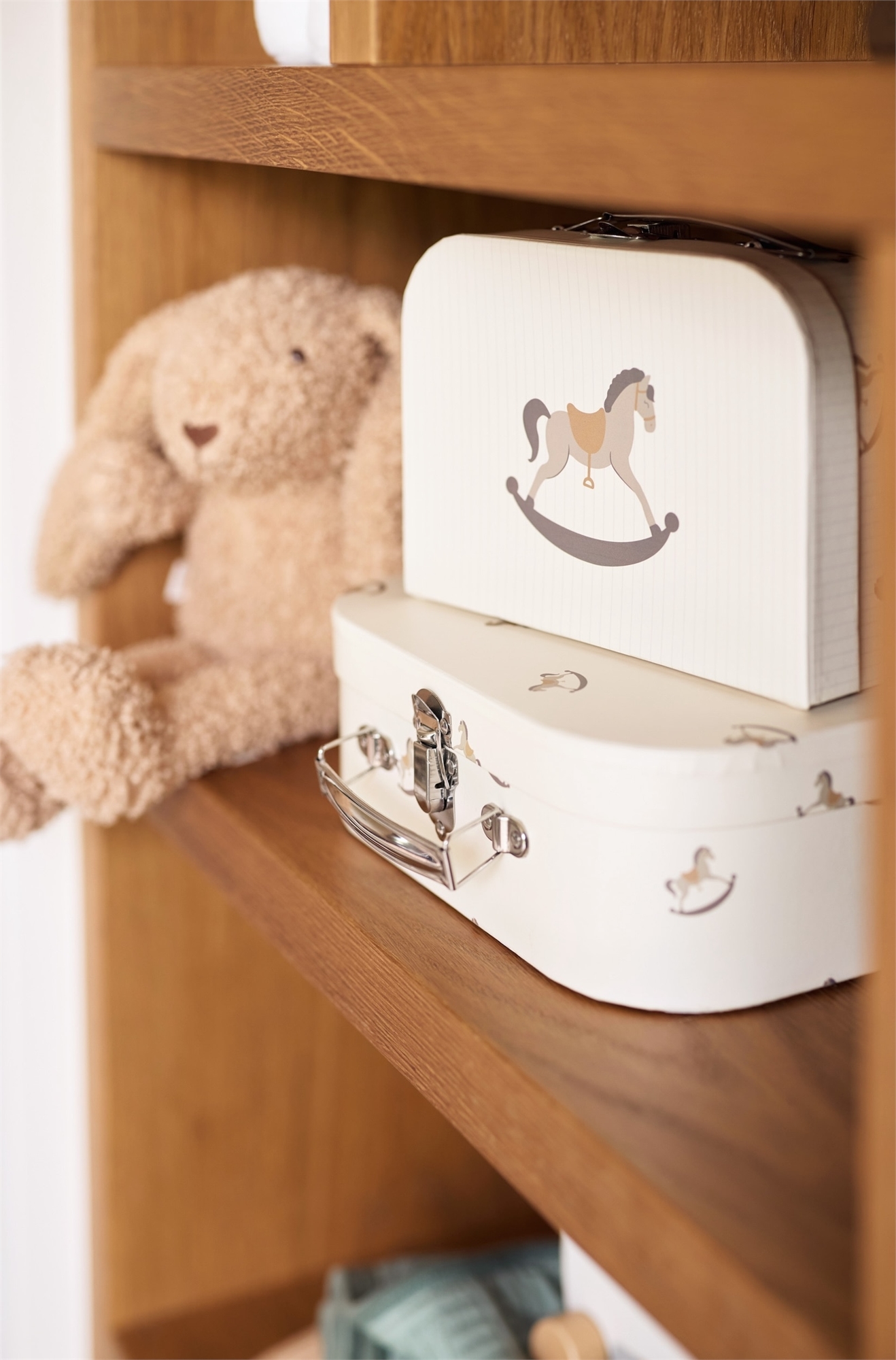 Ваш ребенок гарантированно получит массу удовольствия от этой забавной маленькой лошадки на колесиках и этих игровых наборов. Отлично подходит для игры дома или в дороге. В набор входит 1 чемоданчик побольше с принтом лошадок-качалок и 1 чемоданчик поменьше с принтом лошадки из нашей коллекции Nostalgic Ride! Лошадку на колесиках легко держать в руках, поэтому она подходит для детей от 1 года. Ваш малыш еще слишком мал, чтобы играть с лошадкой и чемоданами? Тогда этот набор идеально подойдет для украшения детской комнаты. Супер милый подарок для малыша! Размеры чемодана: 25x17,5x8,5 см и 20x14,5x8 см.
