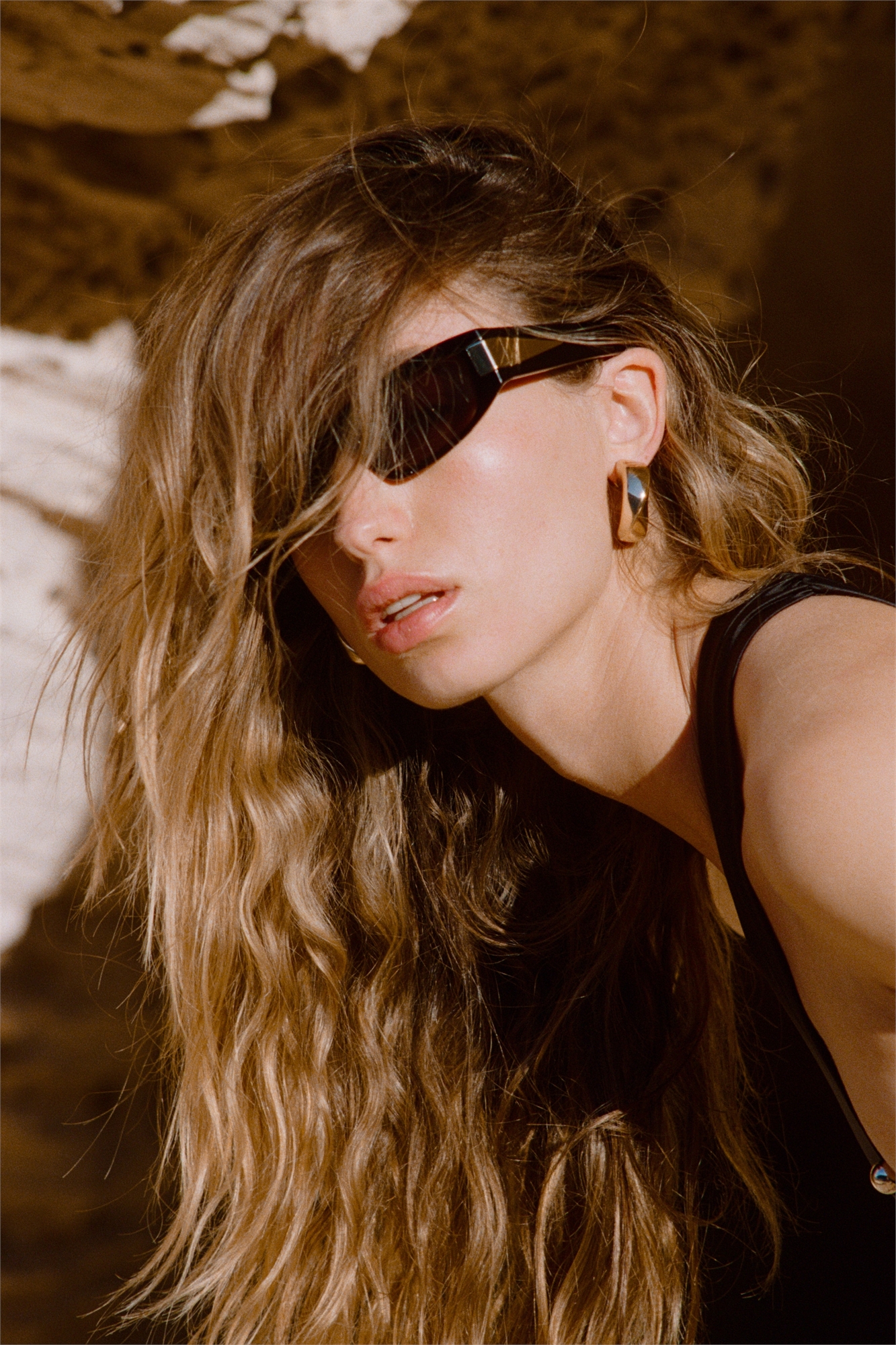 Коллекция Studio. Солнцезащитные очки "кошачий глаз" из пластика с металлическими деталями приглушенного золотого цвета по бокам. В дизайне сочетаются модные и тонкие элементы, что придает ему современный вид. Тонированные пластиковые линзы с УФ-защитой.